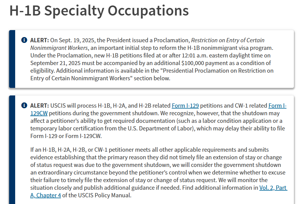 1.申请人须评估:申请H1B是否触发US$100,000费用。